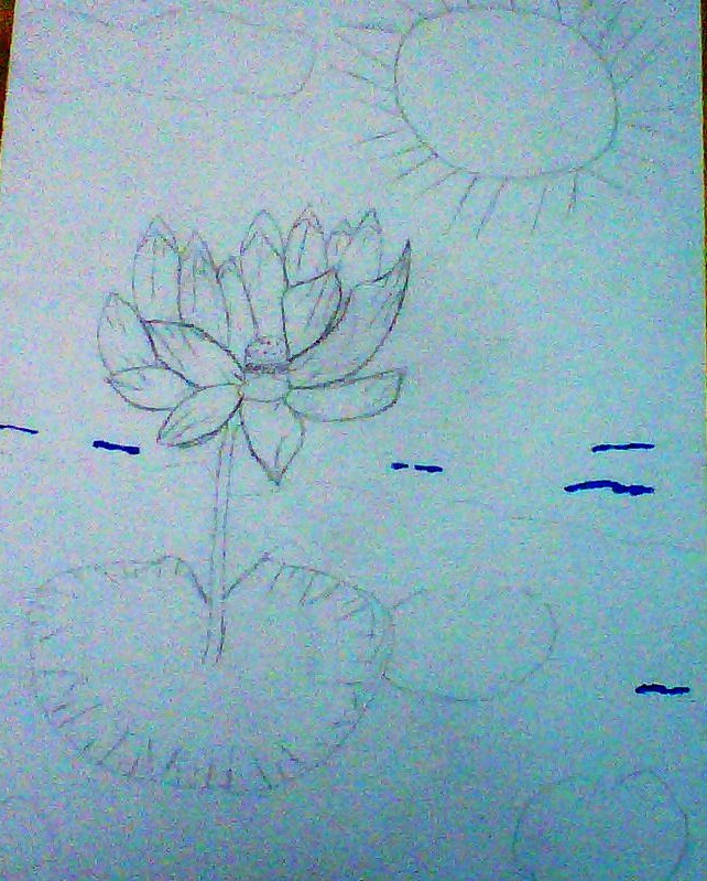 The final product consisted of a lotus flower in the water with floating lilly pads around them and a sunset that consisted of the many colors that catch my mind when I look at a sunset. The hardest part of the project was making a sunset. Since I already pictured in my head what I wanted the sunset to look like, there was no way that it could turn out another way. With the correct usage of water and paint, to give it a soft look, the sunset turned out to be as wonderful as I depicted in my head.