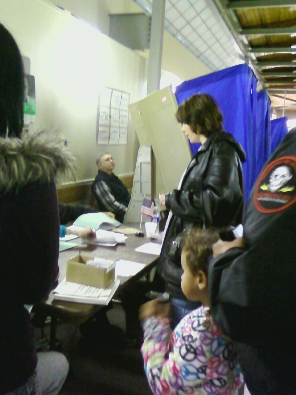I went to the polls and interviewed 3 different people and asked them all ten questions. The first 2 people seemed normal. However, The third guy seemed a bit off even though he was a poll worker. Once my family showed up to vote I followed them inside and took pictures of them. Afterwards i took pictures of the outside and then went home.