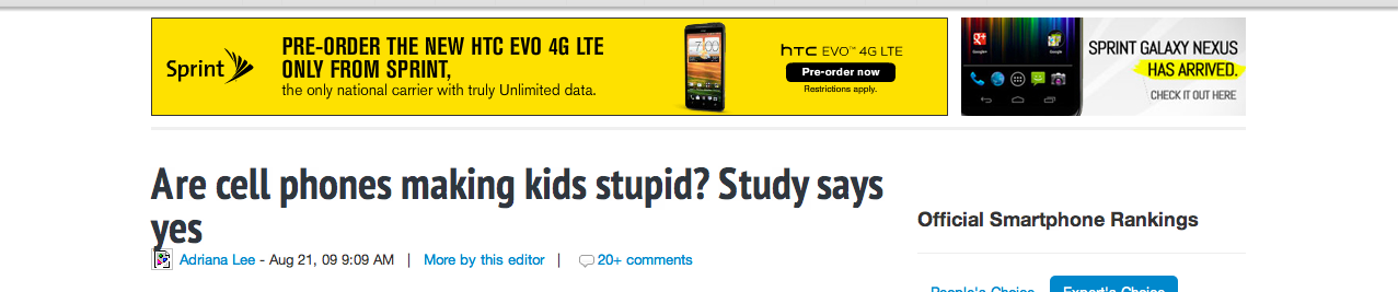 On a very informative website I noticed that they were advertising for cell phones as I was searching for how cell phones makes humans stupider.