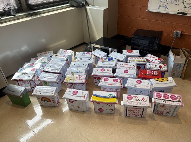 I started off by discussing with my fellow club members of RHA to see if they were interested in solving this issue as well, to which they all enthusiastically agreed. From there, I set up meetings with Mr. Lehman and Mr. Mike (the building engineer) to discuss possibilities and eventually order the bins. Many meetings and after school hours of planning went into the idea and execution of the Bin Decorating Event. By promoting the event and installation of the period product disposal bins through hanging up posters, and making announcements to advisory’s and over the PA, we were able to have a very successful event! There were tons of students involved (across genders as well!), which helped to ensure that the bins would be understood for what they are, and treated respectfully in the stalls.
