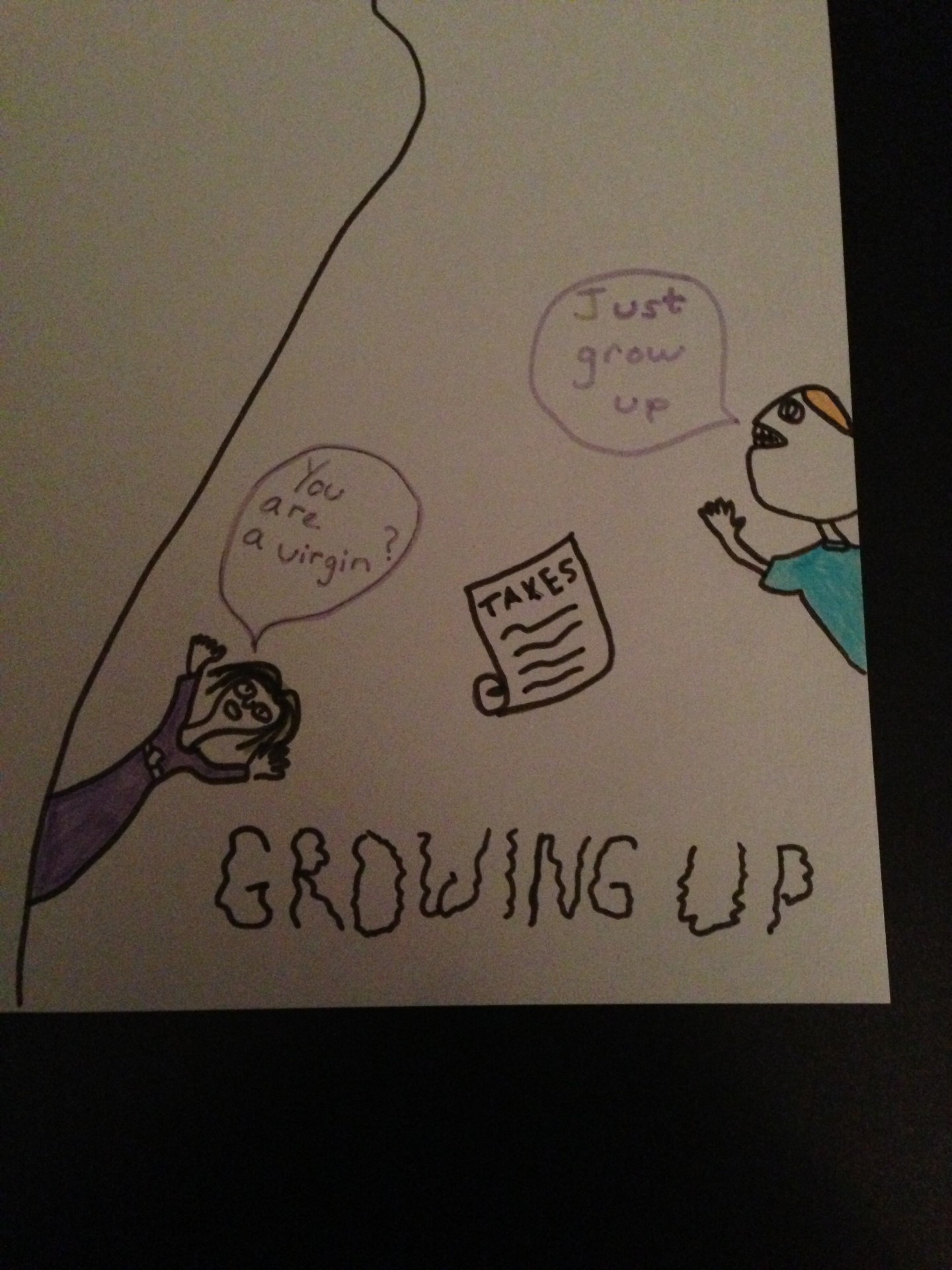 Uhh Uhh you and pop would ever lie to me, not for the last 7 years no way! Anyways last week you guys told me to never lie. When… when I threw my lunch box at JJ last week and I told my teacher I didn’t and I lied… you… you got really mad. Well now I am mad mom… you two lied to me. I don’t understand… why, why would parents lie to their children for all of these years?!?! (take a break)