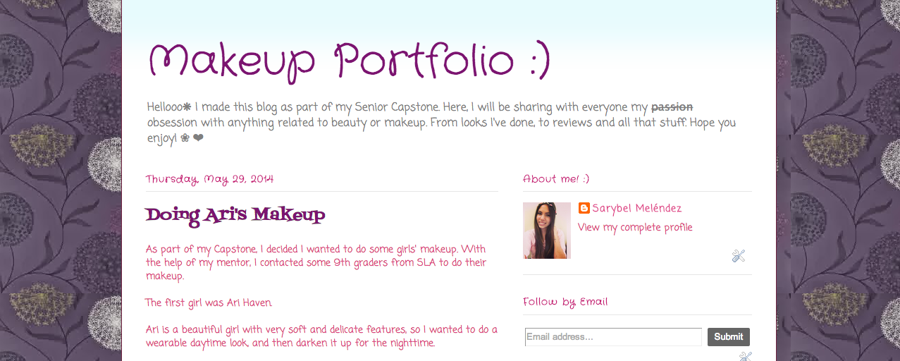 I created a blog where I wrote several posts about the basics of beauty and makeup. I figured this would be a good idea since not a lot of people know how to apply makeup, or how to choose the right kind of makeup. On this blog, I share my knowledge about makeup and also share beauty tips that will help girls know more about these topics. I also did different girls’ makeup. I used ninth graders as models and did different looks on them.