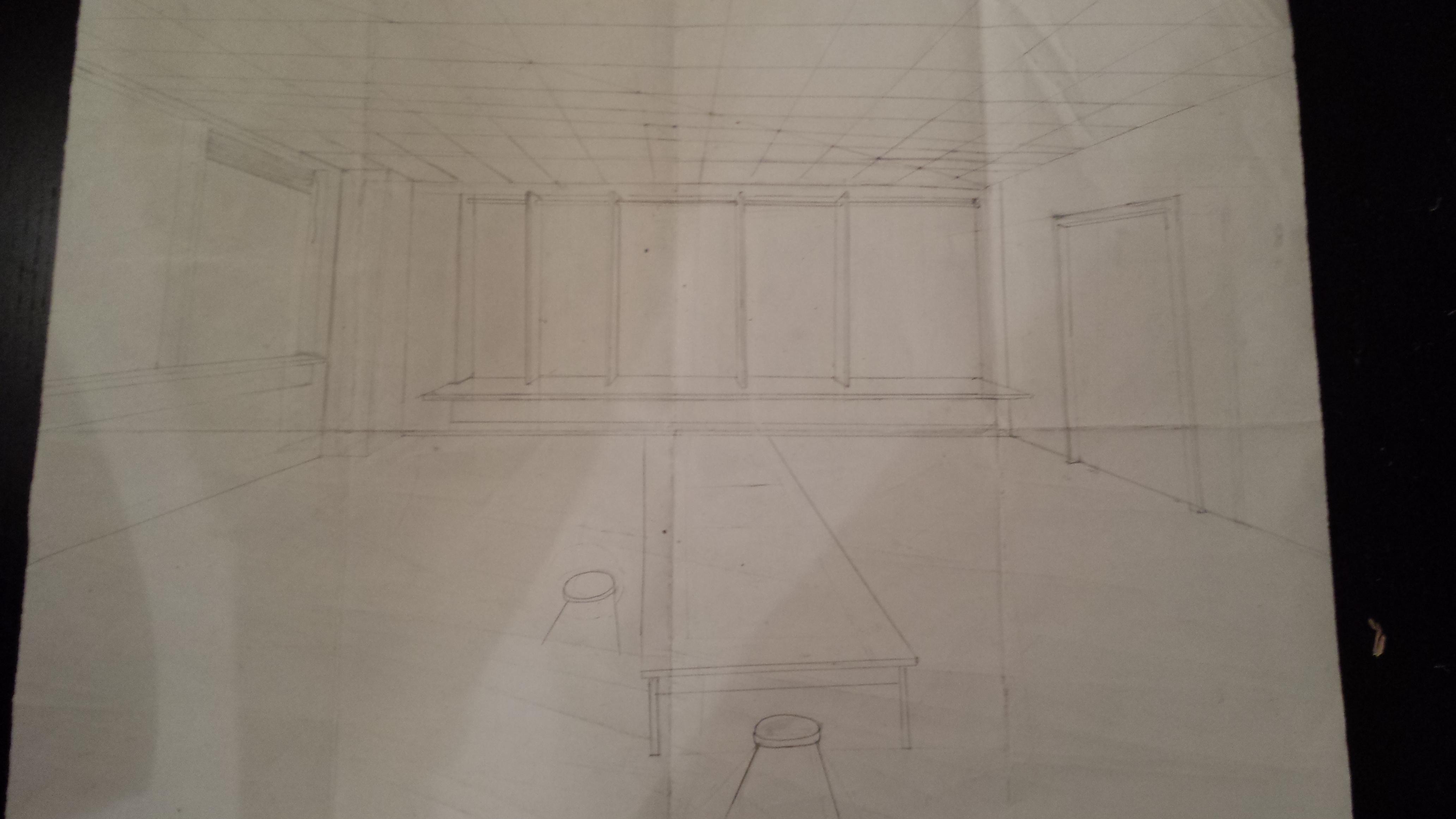 I had a couple of resources that help me through this process of drawing. I had the link that Ms.Hull put up to show step by step how to draw one side of the room. I had some of my classmates who helped me fix the mistakes I had and also I had my dad who is very good at teaching art help me along the way.