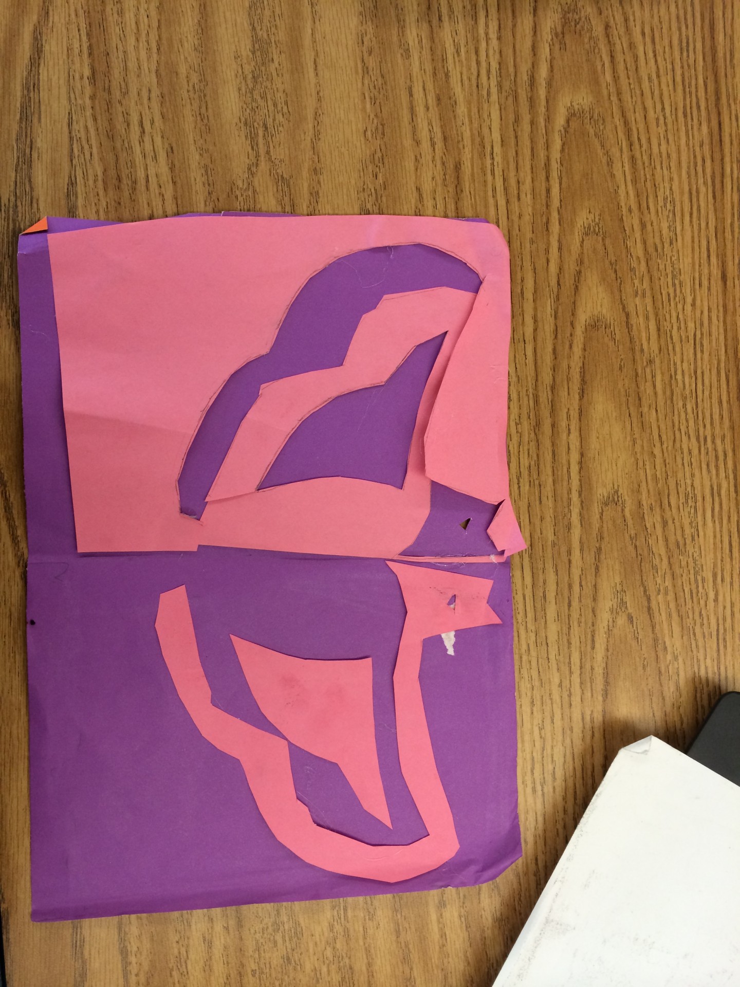 I found negative space in my cut because I had two different colors and the purple was the space in the background. In the stool drawing the white space surrounding the table,stool and plant.