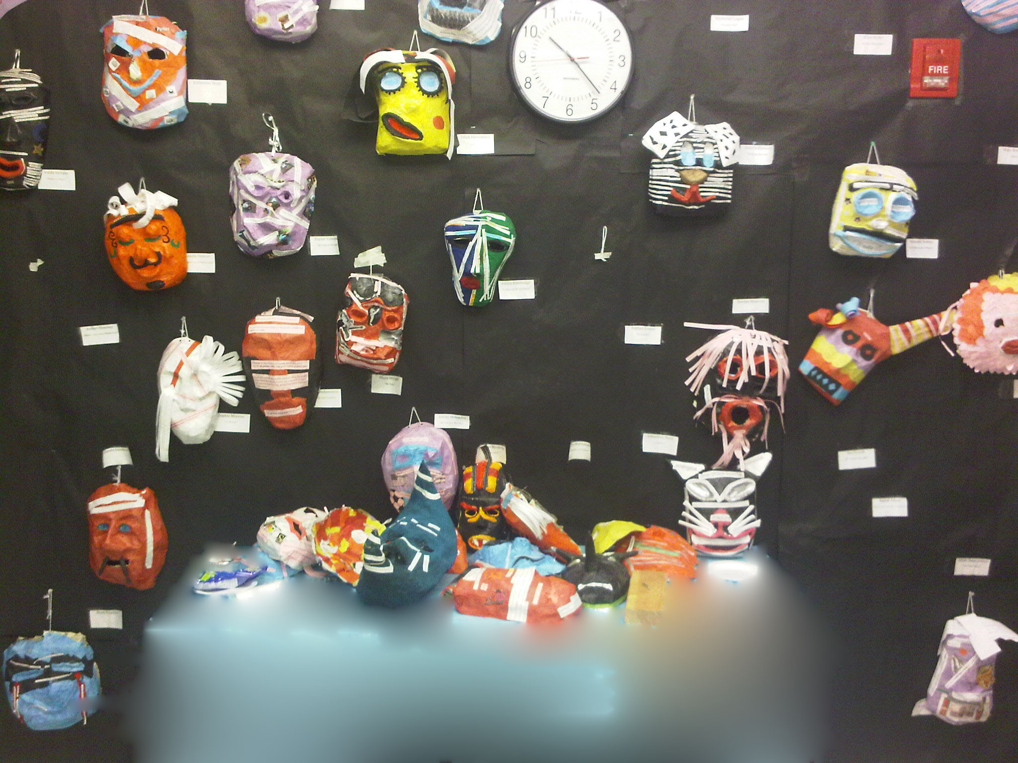 For this specific assignment, I took 200 hundred pictures of the most random things. After taking those pictures, I just randomly picked five of them. I used photoshop to edit the pictures in a variety of ways. The photos that I edited were of things in the school like the clock on the wall on the second floor, the big painting of the animals, the masks that Ms. Manuel's spanish class made, and a pair of classes that were on one of the tables. The last picture that I edited was a photo of myself. There was no specific reason why I choose these pictures, but I thought what I did to edit them was pretty cool.