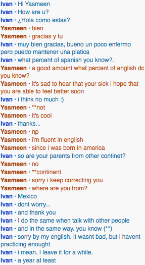 This blog post is a bit short since i was not able to talk to my person after it disconnected. But my goal fo this week was to find out how to ask about college and what someone wanted to do in their future it turned out quite well and i learned a bunch of new stuff. (It won't let me upload a screenshot just yet though..)