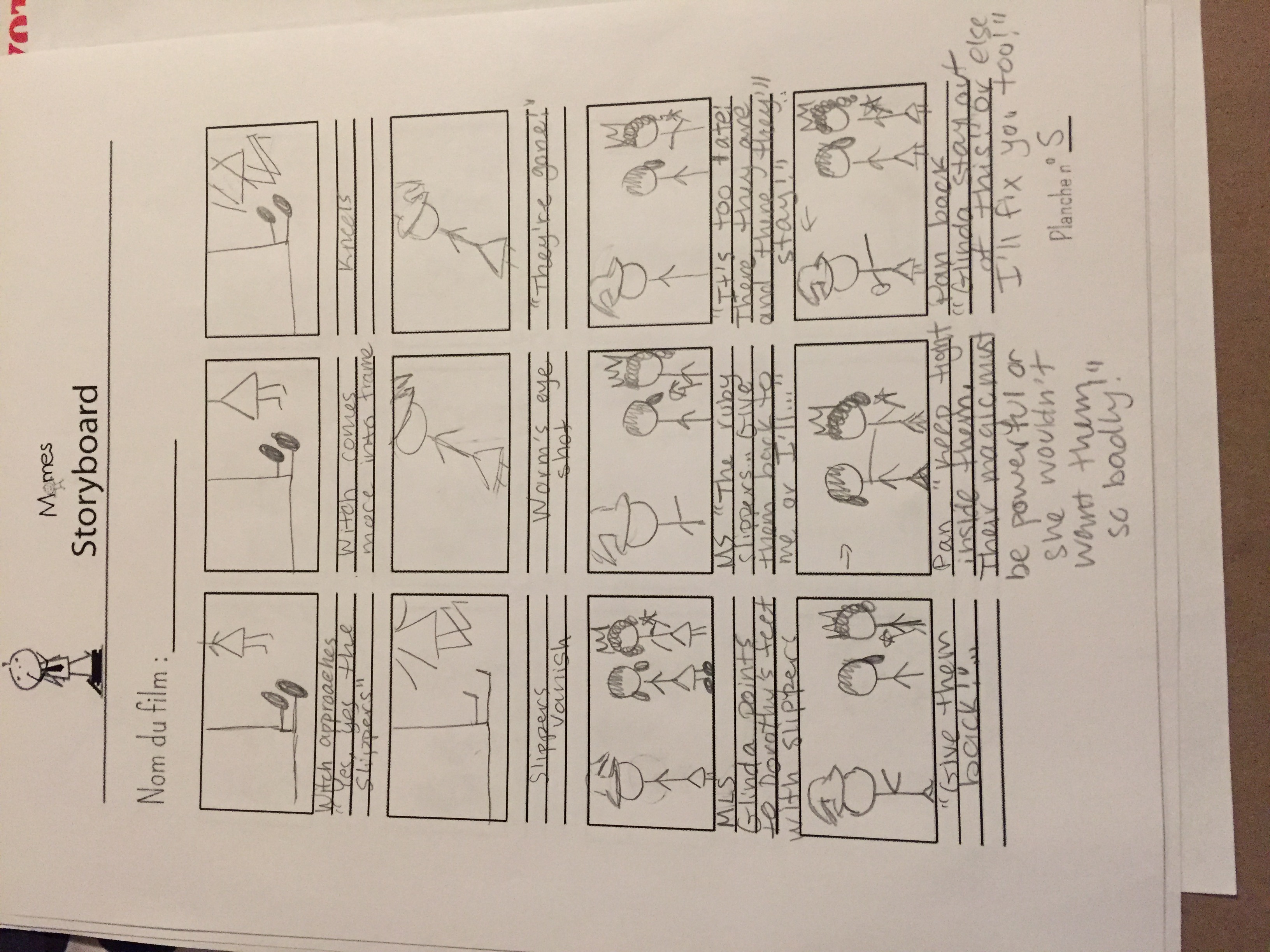 A major technique Bay is known for is the classic Bay shot. This shot has the camera spinning around the character as the character only moves vertically and often locks their eyes in one direction. The camera also spins upwards, showing the detailed backgrounds and making the character smaller. This is in every Michael Bay film and we felt it was absolutely necessary to include it. This kind of shot is really complex, as an abundance of technology is needed in order to make this shot seamless. This shot is what inspired us to change The Wizard of Oz into a Bay film, as we felt that the incorporating the Bay shot when Dorothy first lands in Oz could really showcase how alone and lost she felt in this empty city. We also made the backgrounds in Munchkinland more detailed in our drawings during this Michael Bay shot. However, we changed the colorful towers and twisty staircases into more of a hut and village set up to create a different tone for the film. We thought it would be too cheerful if we kept the setting exactly the same, and wouldn’t really convey the same feeling as the rest of Bay’s movies.
