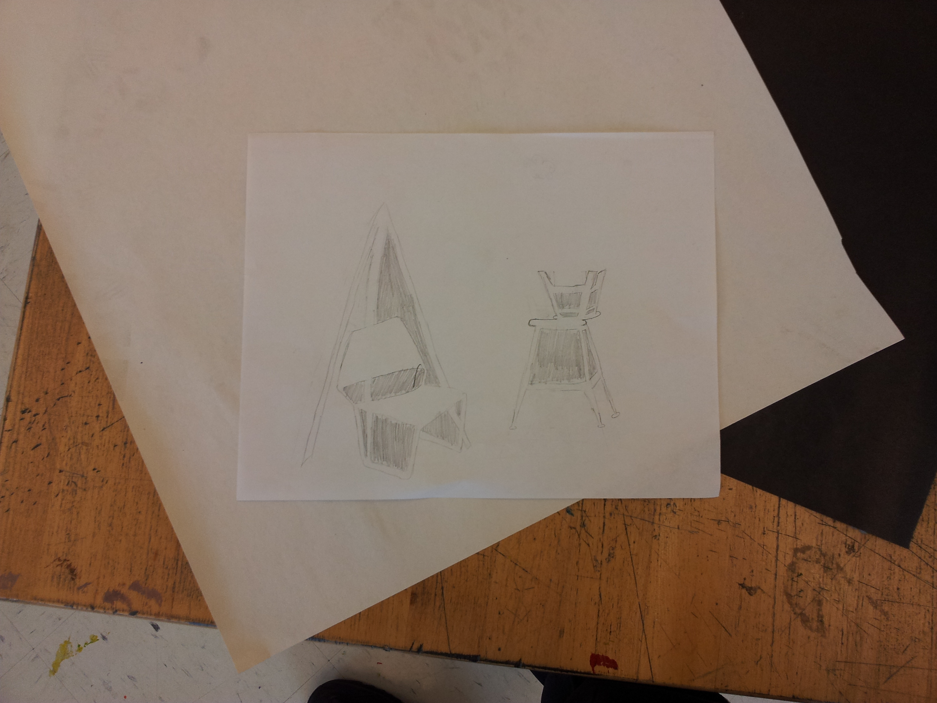 The stool drawing (which I did not complete because of time issues) was black and white, opposites. Opposites create a cool effect between the two colors and make it pop.