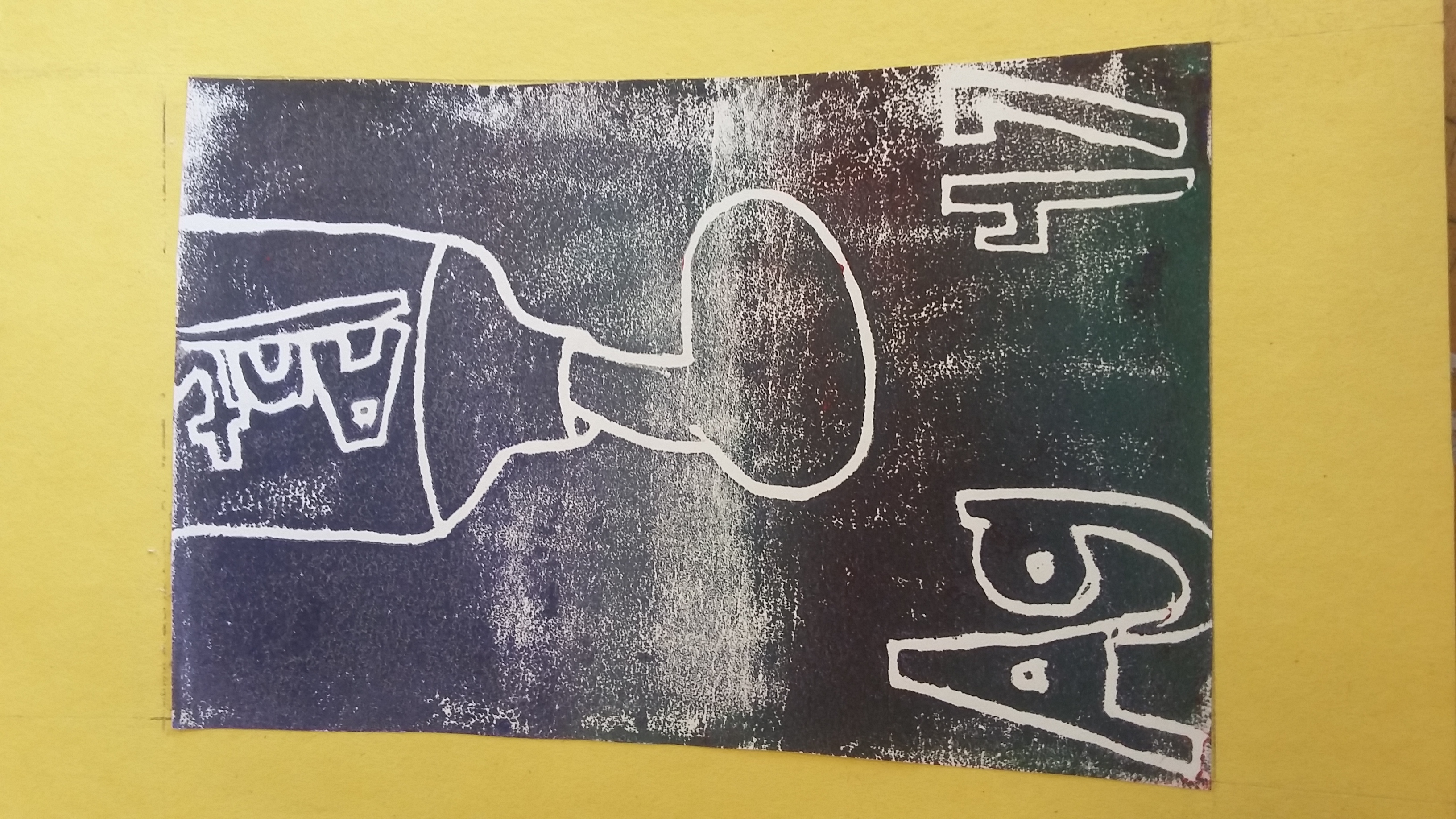 My element is Palladium which is referred to as Pd on the periodic table and its atomic number is 46. My element was founded by William Hyde Wollaston in 1803 after melting platinum with acids and found little pieces of palladium. Uses for palladium today include catalytic converters for cars, jewelry, and dentistry tools. One fun fact is that palladium was used for cold fusion research. Well I made the 46th as it was so I had more room for the Pd as I made Pd look like it had pieces of palladium like when Wollaston first discovered palladium. First I drew the template into a 4 x 6” square. Then I drew the image on a small piece of paper that was see through. Then I flipped the traced picture onto a piece of foam then pressed the lines of the drawing so that those parts would be my negative space you could say. Then I took a roller with some paint on it and I tried my best to make 6 good prints. If their was anything I would do differently would be when making the prints I took some paint off the roller as some of my images I could barely see the lines. I would say trying to make the prints with the roller as it was enjoyable to try and was hard to get right.