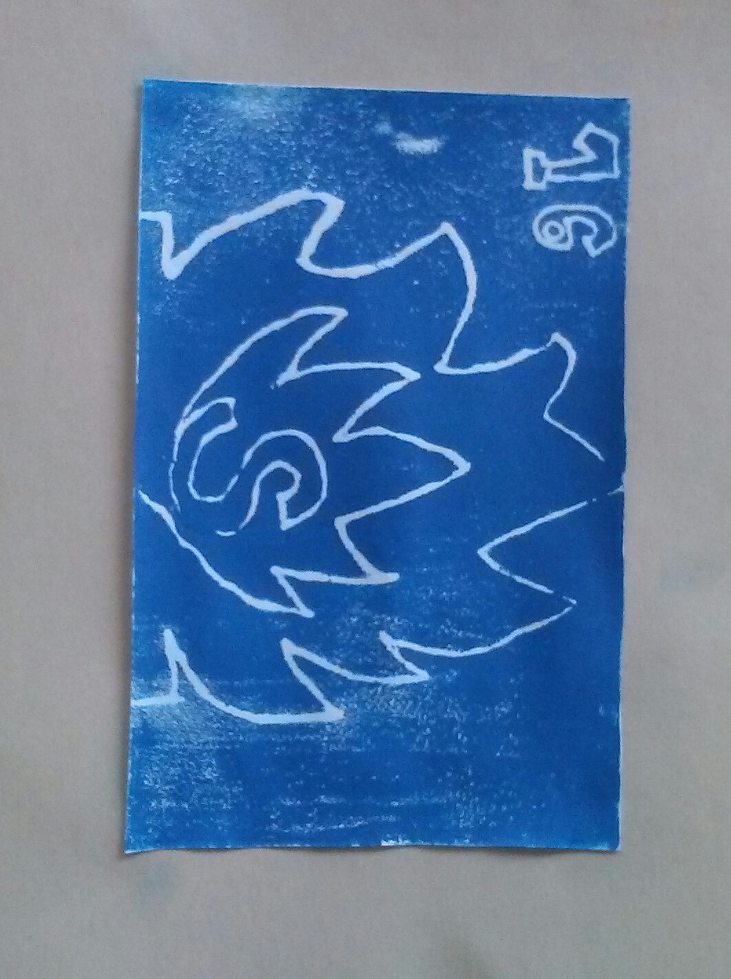 There was a lot of process when doing this print. The first process was that drawing the diamond was hard because I have to make it perfectly semetrical. Then when it was time for printing, it was easy because there was no need to turn it backwards. While drawing it on the foam, the only thing that need to be backward was the number and the letter. While printing it, I evenly rolled the paint and then rolled it to the foam. After that, I layed a paper on top of it and then evenly rubbed it on to the paper. After that, your picture will be perfect.
