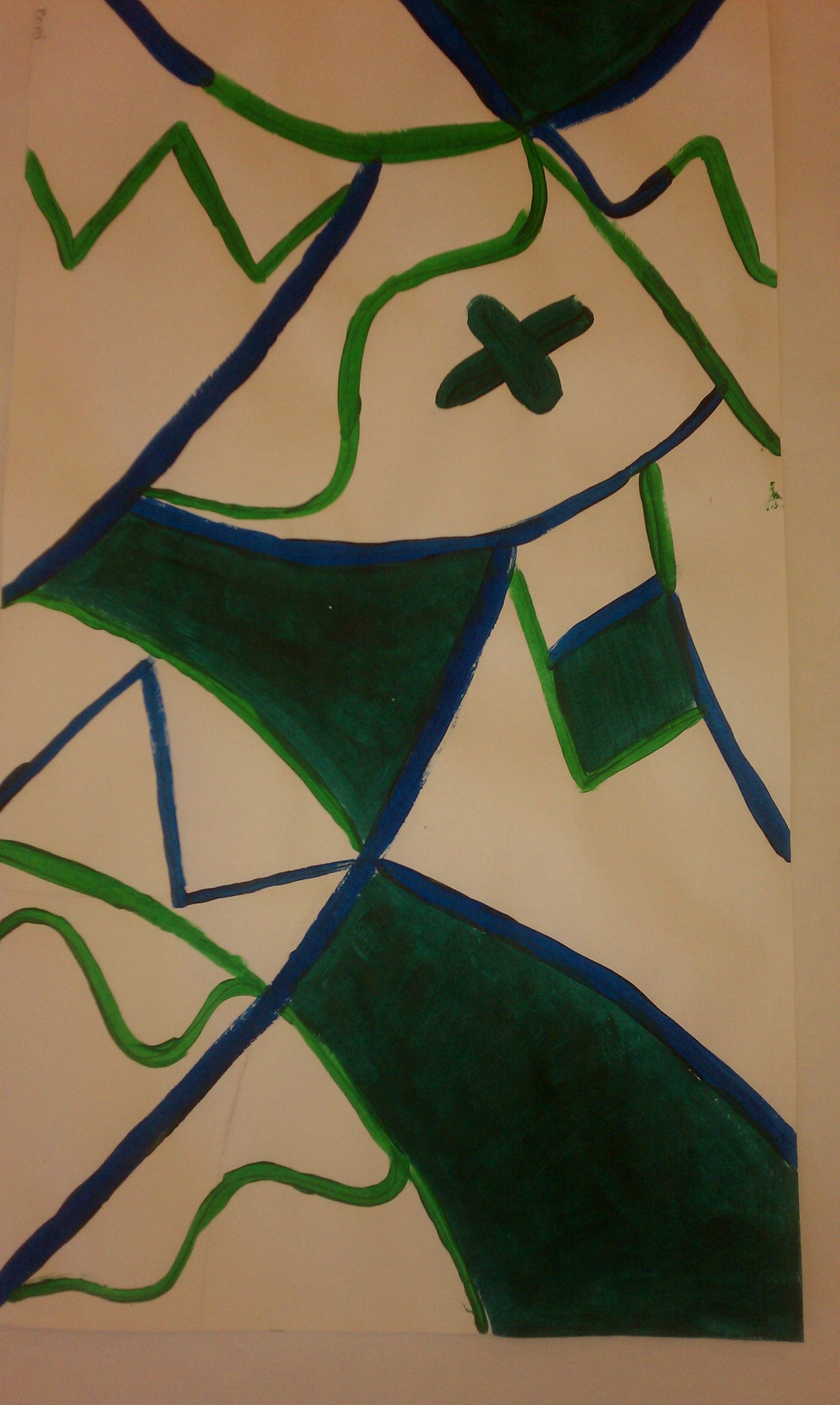 The first piece I did was emotional abstract.The emotion I tried to do and get across was anger. I used dark colors such as black, rich reds and dark blue. I tried to make a messy but edgy piece, I used hard edge shapes such as triangles and pentagons to me they are hard edged.