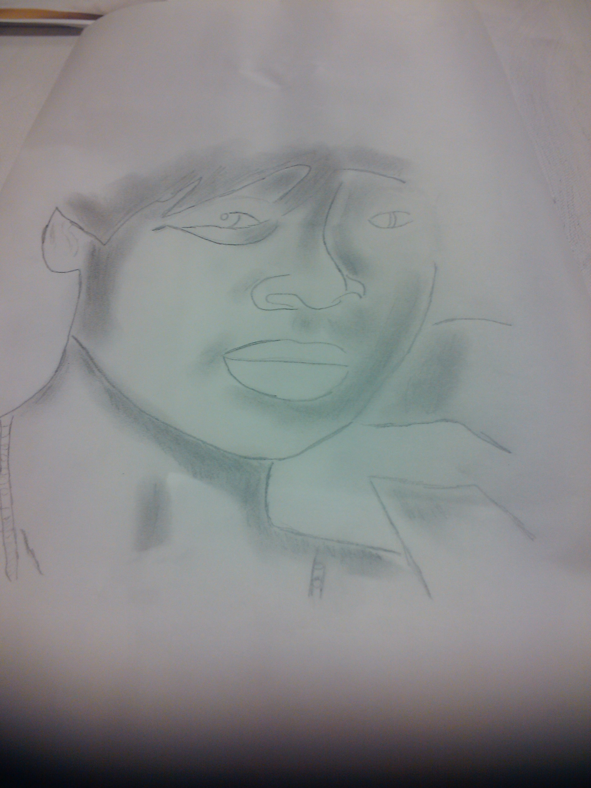 My second drawing was of the color wheel. I heard of the color wheel many a times but I never memorized the colors or the colors that mix to make other colors so this was like a refreshing course. I looked into it by going to read another book my teacher had called discovering the art history. I looked into this book and there I found where it was that I could go to find detailed information about the color wheel. So I drew that color wheel on a big piece of paper with pastels. Then we were asked draw a color wheel with only the primary colors so I did that also with some construction paper and pastels.
