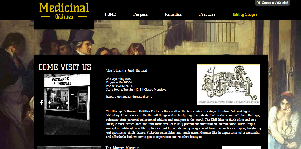 My research took me from oddity shops and museums to old translated German and Greek books/texts. Speaking with others about my ideas and interacting with persons involved in oddity collecting helped steer my research in productive directions. Without outside resources and personnel I don't believe I would have gathered as much as I have.