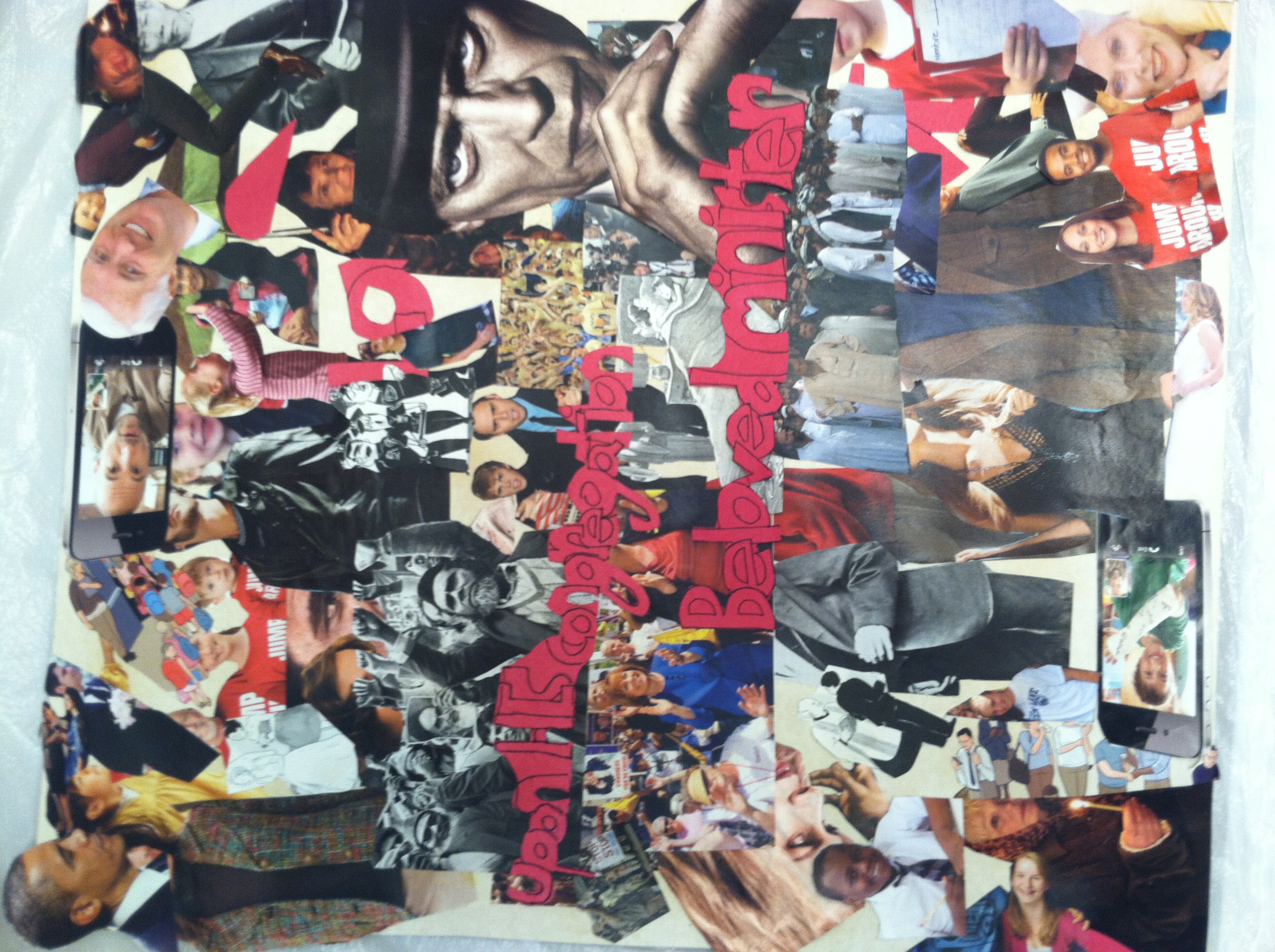 Even with my project fitting my expectations, if I could do it over I would do some things differently. For instance, instead of using magazine cutouts I would have found another method. I say this because for the most part all the magazines I got cutouts from had common themes. This made it hard for me to add a sense of diversity to my project or a variety of images. Maybe I could have done a drawing or something, which would have required me to generate my own themes, images, and ideas.