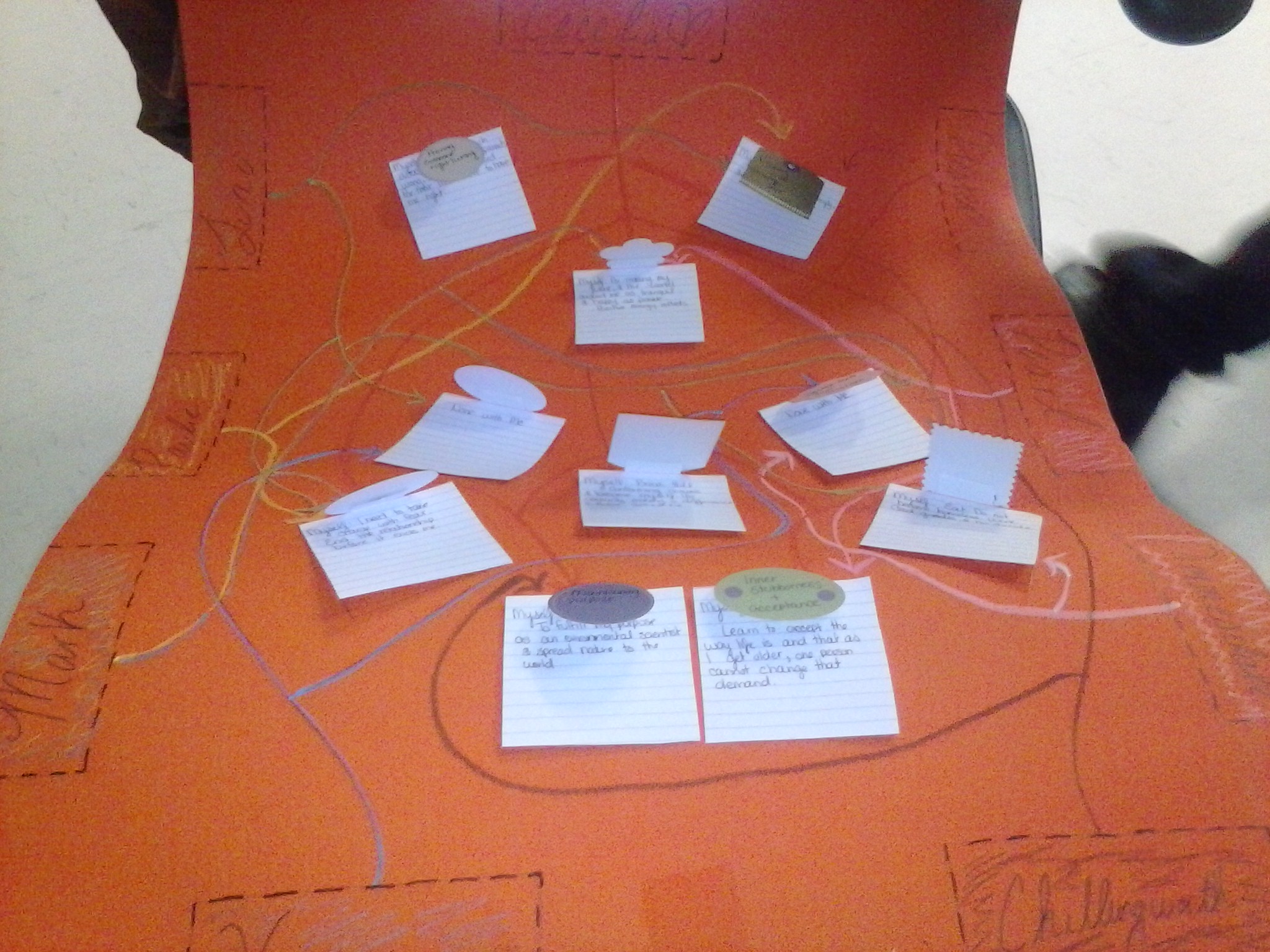As furthering into my project, I made sure to include my connection to each as well, and on the index cards wrote down the responsibilities I have to face with each one. Though, nothing is perfect and I din't connect to a few of them. But that's what makes life! We all can connect to similar, but not all the same relationships and responsibilities.
