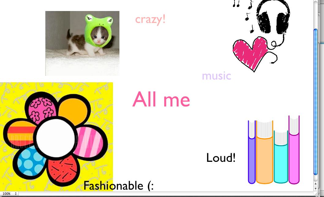 I changed my slide because I learned how to do other things that I really liked. For example, I liked how you can make the word look 3d by overlapping them and changing the colors. I changed the arrangement of the pictures because I learned how to overlap the pictures and I wanted to add more and still make it eye catching and fill the whole page like a collage. I used the