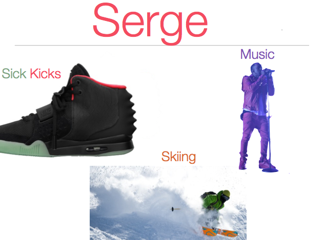 I chose to do my slide this way because it reflects how I am and what I enjoy to do. I love to go skiing, listen to music, and collect sneakers. The pictures make it POP to the eye. The color of the pictures draw attention, but to over power that; I put the Text right below the pictures so you don't loose your self in the images. There is a good repetition with pattern’s in the area of text and it keeps it looking good and balanced out. The shape of the pictures naturally draw attention. It may be crowded, but the excitement of the pictures make up for that. Thank You for looking at my PDF.