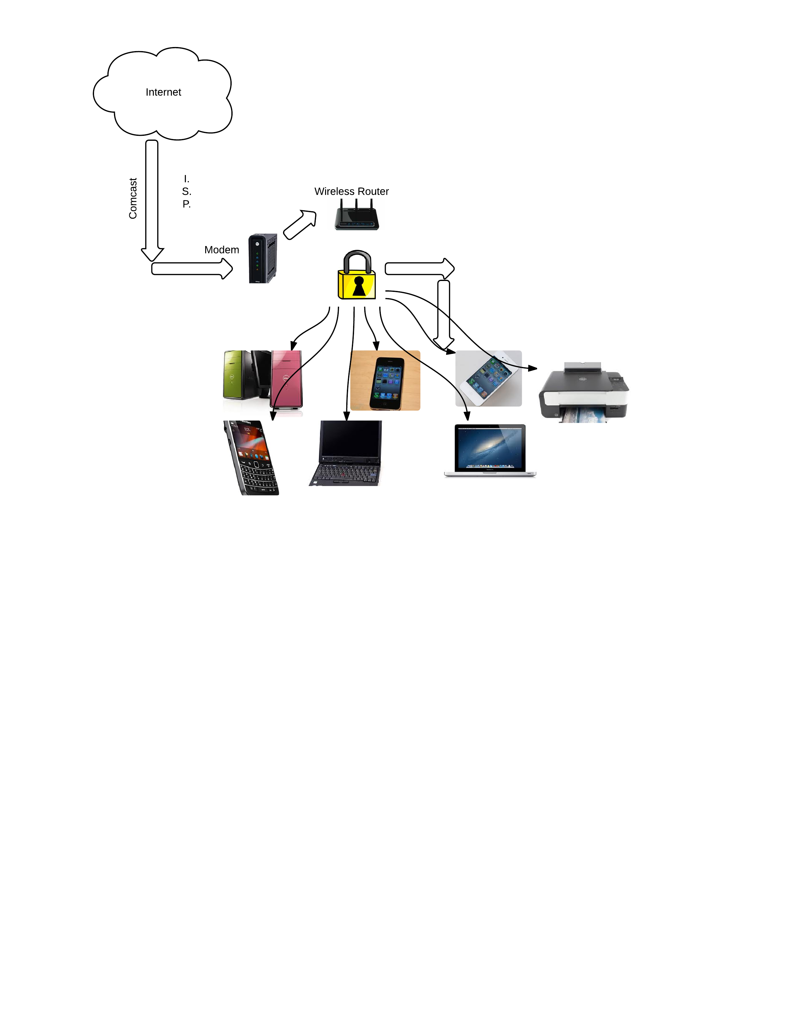 My local area network has many things connected to it. I have a lot of devices in my house that are connected to the wireless internet. The devices are three iPhones, an iPad, one Macbook, one Macbook Air, one Macbook Pro, a Playstation 3, and a printer. Comcast is my internet provider, so all of those devices are using Comcast's internet.